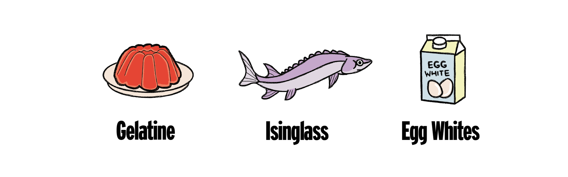 No there isnβt meat in your wine. But the use of some animal byproducts like egg white, gelatin and isinglass (collagen from a fish bladder!) are quite common in the filtering process of wine (and beer!). These byproducts are not in the final bottle, but are merely used to give the wine its pretty, bright clear colour. Vegan wine instead uses a substitute like bentonite (clay) or are simply unfiltered.