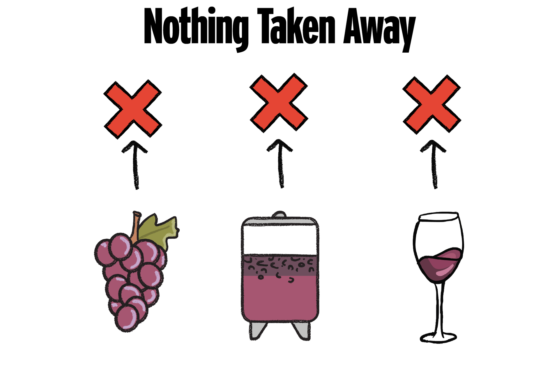Nothing is being taken away. It is the fermented grape juice in its natural form. What are the things that other winemakers take away that natural winemakers don't? No filtering, no fining, no reverse osmosis.