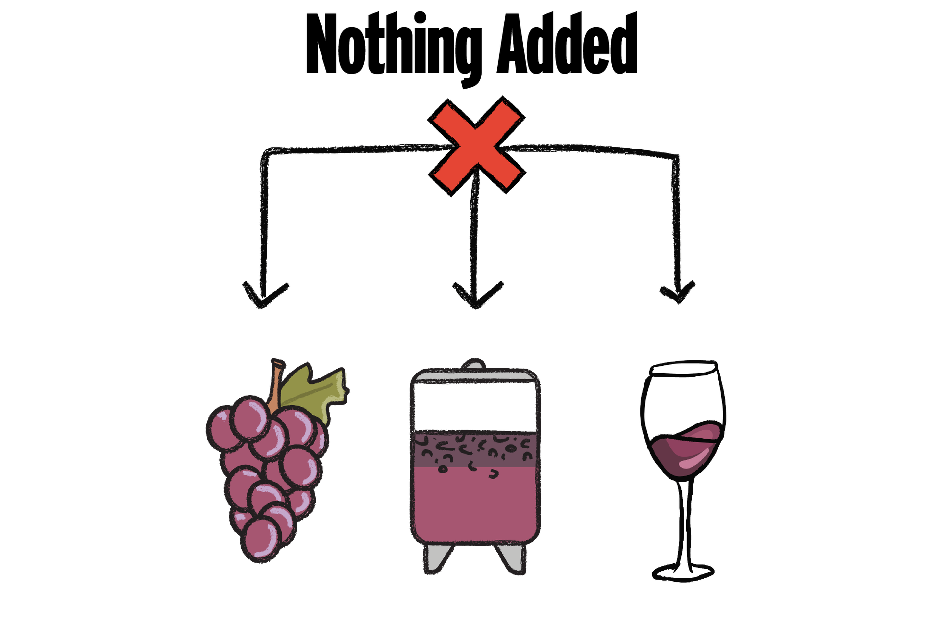 Nothing is being added to the wine. So it is simply grapes. What are the things that other winemakers add that natural winemakers don't? On the vineyard - copper and sulphur and other preventative chemicals like weedkillers. In the winery - yeast, acid, tannin, sulphur.